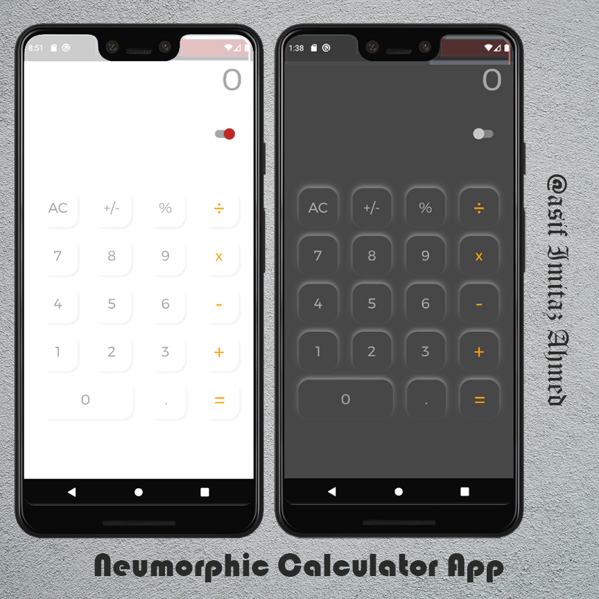 A classic calculator with neomorphic buttons. Light & Dark theme